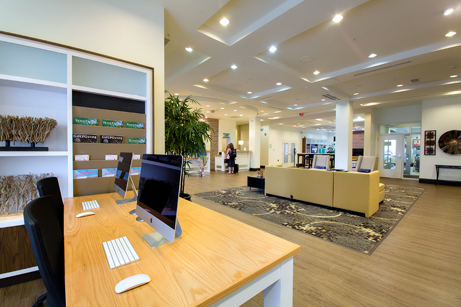 Common areas will be enhanced with a larger sundry shop, multiple seating areas in the lobby will offer connection ports. The lobby will also include two community tables which are perfect for meeting with associates while working on laptops. We will also have a designated media center and e-bar.